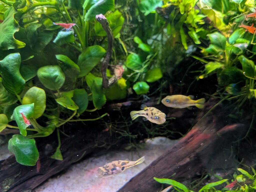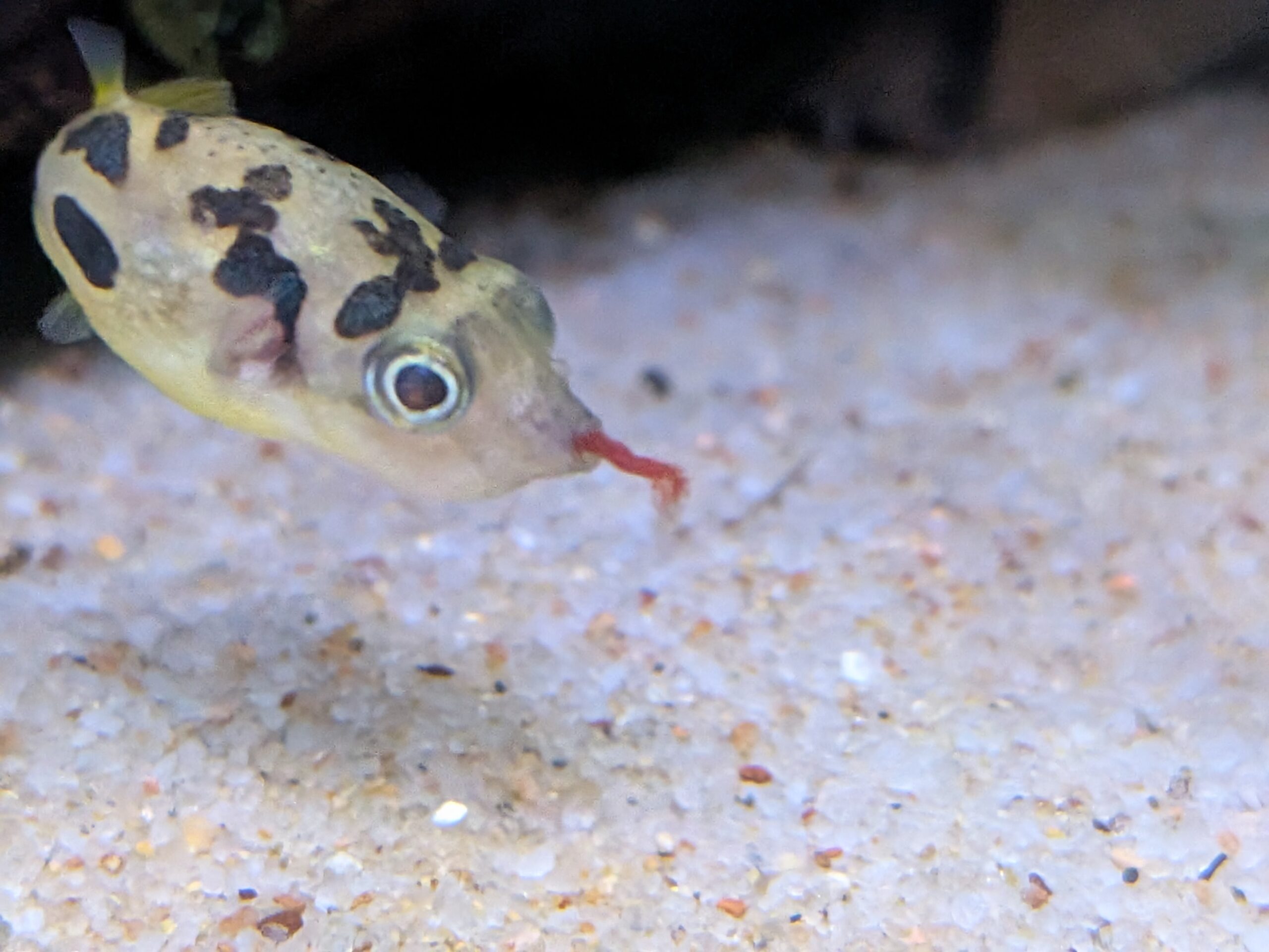 ​水槽の前を通ると、アベニーパファーが寄ってくる。