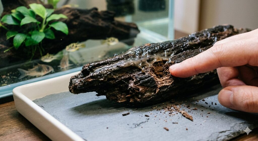 もちろん、新しい流木も、水に入れれば濁りは出る。